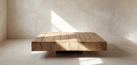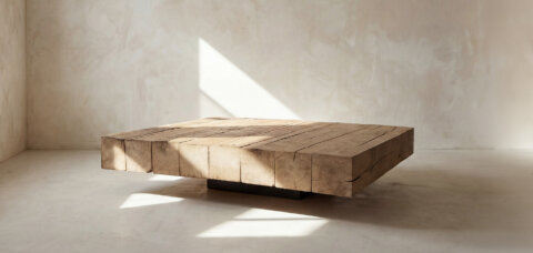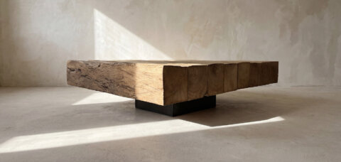 Oakâme’s luxury coffee table is crafted from aged wood reclaimed from nineteenth and twentieth century buildings across Eastern Europe. Each product bears a registration plate allowing you to trace the provenance of its solid oak beams.
