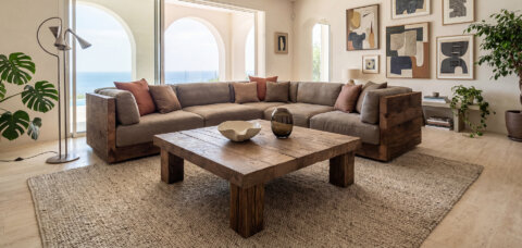 Oakâme’s luxury coffee table is crafted from aged wood reclaimed from nineteenth and twentieth century buildings across Eastern Europe. Each product bears a registration plate allowing you to trace the provenance of its solid oak beams.