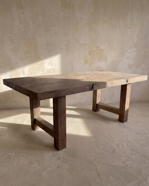 Les poutres anciennes et planches de chêne massives qui composent notre gamme de table à manger Camus dénotent de leur histoire du fait de leur aspect unique. En préservant chaque élément distinctif, nous voulons rendre hommage à leur vie antérieure.