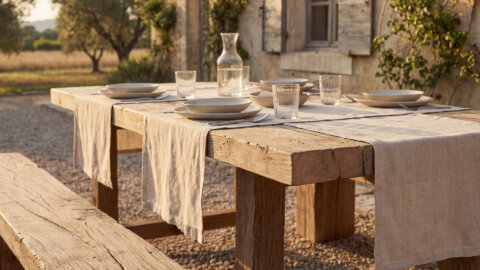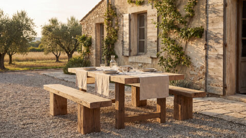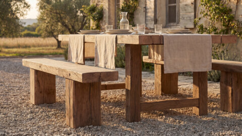 Une table de ferme massive et rustique, l'héritage du bois au service de la postérité.