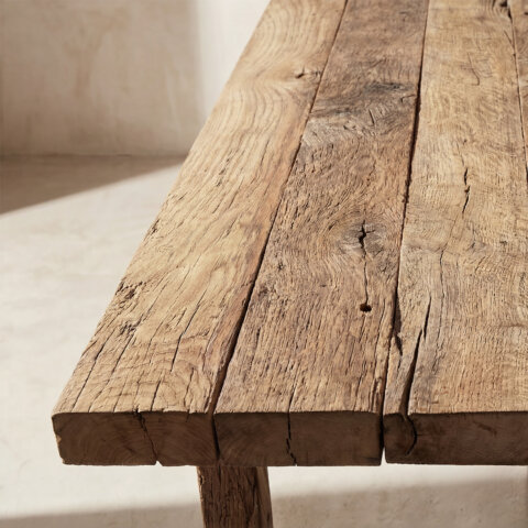 Les poutres anciennes et planches de chêne massives qui composent notre gamme de table à manger Camus dénotent de leur histoire du fait de leur aspect unique. En préservant chaque élément distinctif, nous voulons rendre hommage à leur vie antérieure.